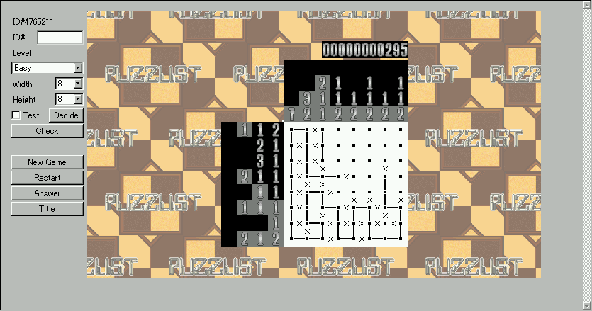 お絵描きロジックのように、周囲に描かれた数字に従って、線を書き入れていくパズル。