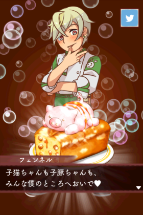 男の子たちは…ナンパ師…じゃなかった、ケーキ職人で世界一のイケメンであるフェンネル。
