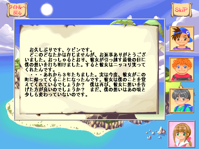 瓶に手紙を入れて海に流すという「あきびん通信」により、遠いどこかにいる「ケビン」とやり取りをすることができます。