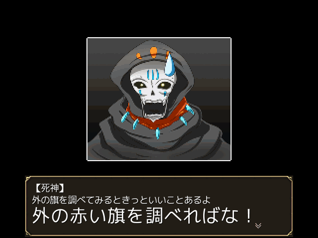 ゲームオーバーになると、死神がアドバイスしてくれます。シャド〇ゲイトとは違ってやたらフレンドリーな死神ですね。