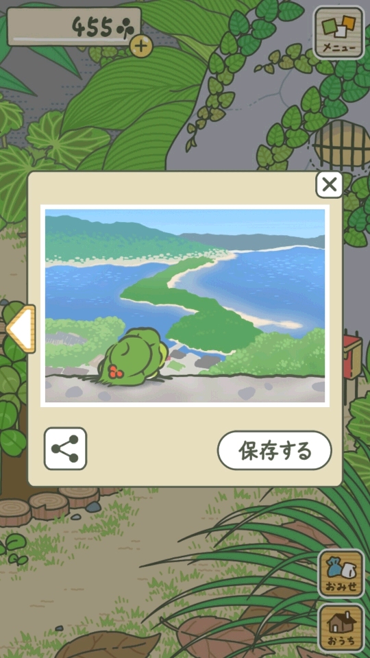 プレイ時間も、クローバーの採取と、かえるのお土産や写真の受け取り、旅支度の手伝い、だけで1~2分です。