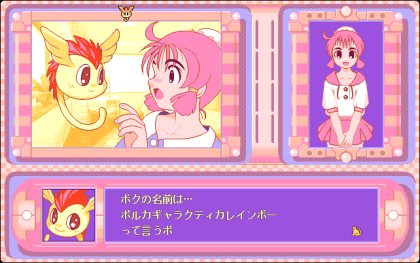 選択肢によっては夢見がちだったり現実的だったりする、ちょっとアホの子のさおりちゃんと、さおりちゃんの助けを求めて夢に現れた、妖精獣のポルカです。
