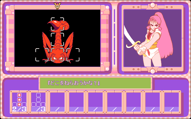 画面に枠が表示されており、その枠のどれか3か所(ラスボスのみ4か所)が敵の弱点になります。