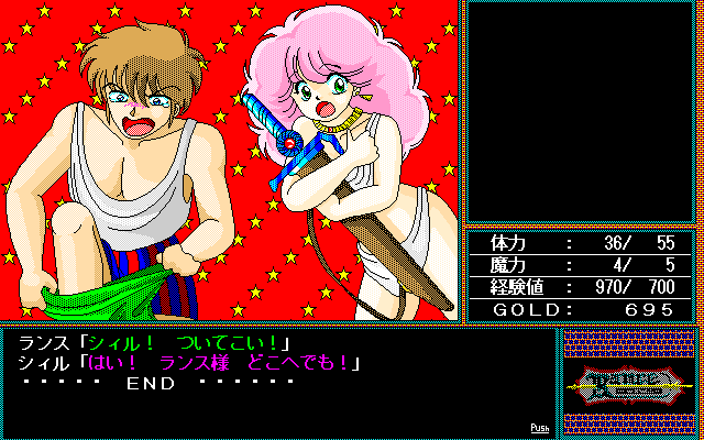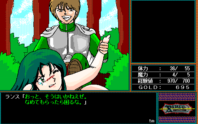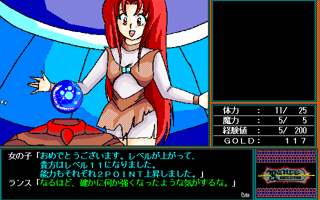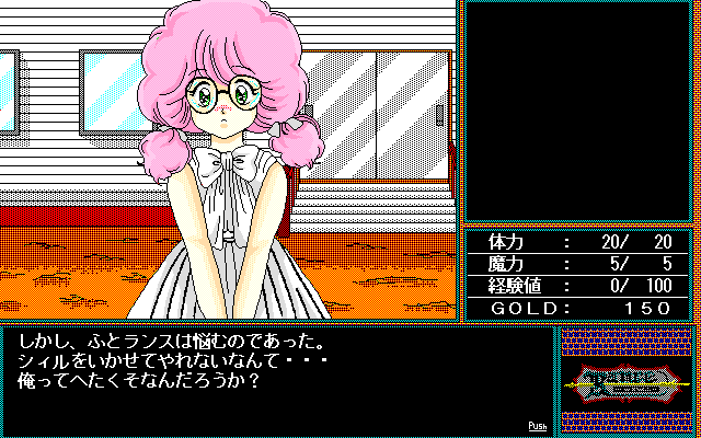 ランス当時、チャンピオンソフト(アリスソフト)にはAVGを作る環境しかなく、RPGをその環境で無理やり作った…とのちに語られているように、AVGライクなゲーム画面になっています。