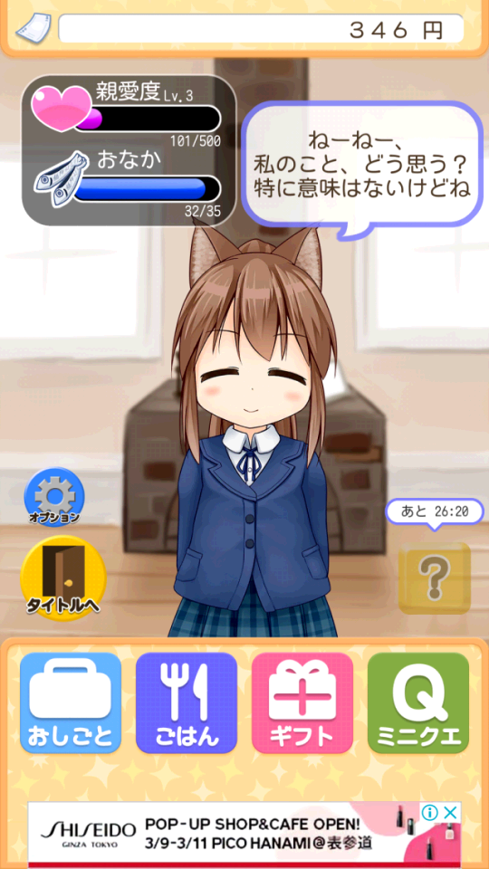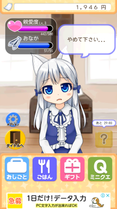 お金がたまったら、ギフトコマンドから、アクセサリーやおもちゃをプレゼントしましょう、信愛度が上がります。