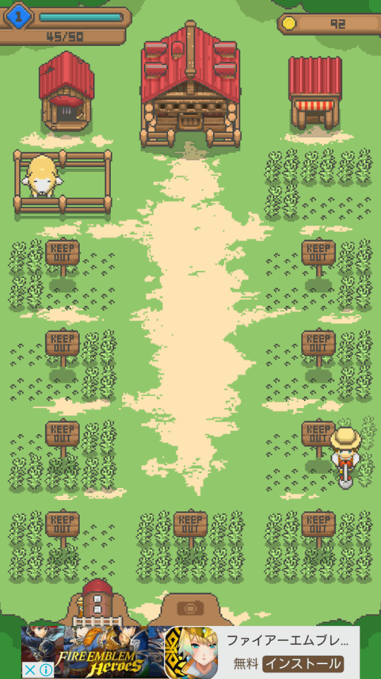 最初は使える区画は少なく、空いた土地は雑草が生えているだけですが、レベルが上がるとアンロックされ、お金を払う(買い戻す?)ことで使えるようになります。