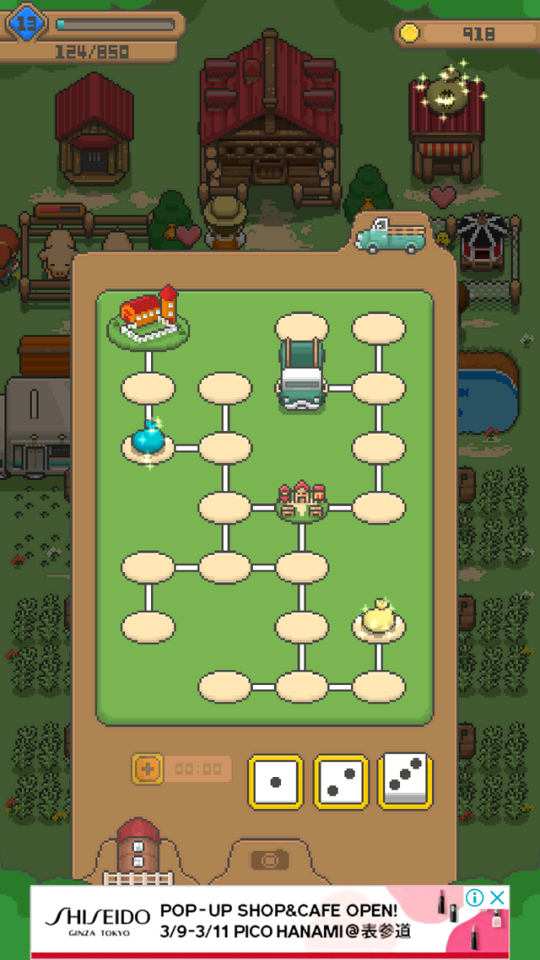 画面下のダイスをタップして、ダイスを振ります。チャンスは最大3回で、使ったダイスは時間で回復します。