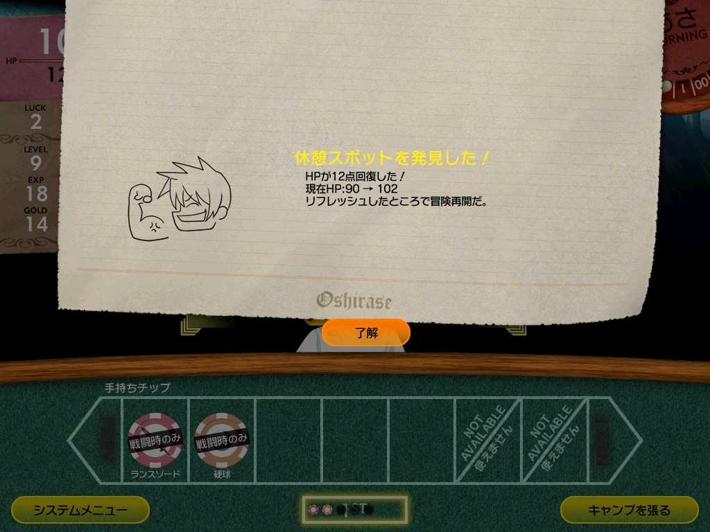 ここのノートのようなデザインが、なんとなくアナログゲームを意識させるなあ。まあ、チップシステムといい、おそらくアナログゲームを意識しているんだろうけど。