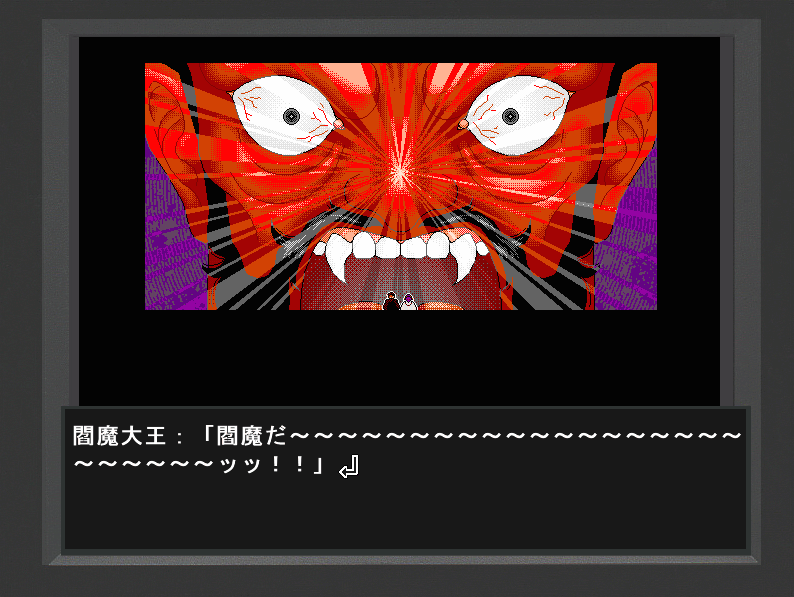 どうでもいいけどこのグラフィックすごくないですか・・・閻魔大王のグラフィックだけでもかなり力入っているのに、そこに明暗のかかった集中線が入っている。HARD社のグラフィックはすごいってそういうことですよ。って言っても、あまり興味のある人はいないかもしれませんが。閻魔だし。