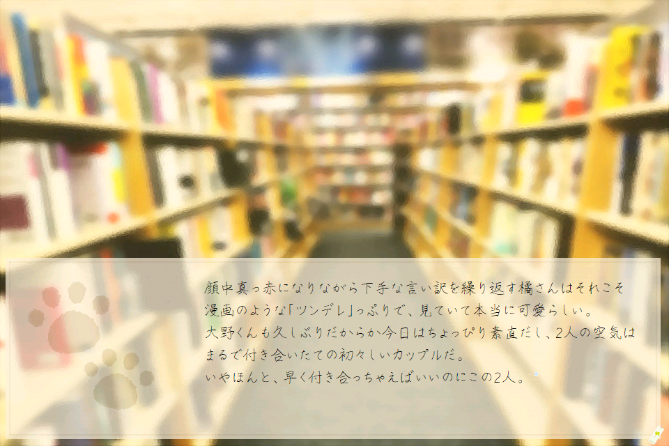 ちょっと恋愛?的な要素も…周囲からはどーみても両想いなのに、なんでこの二人付き合ってないんだろう?という、そんな二人にちょっとおせっかいを焼いてみたり…。