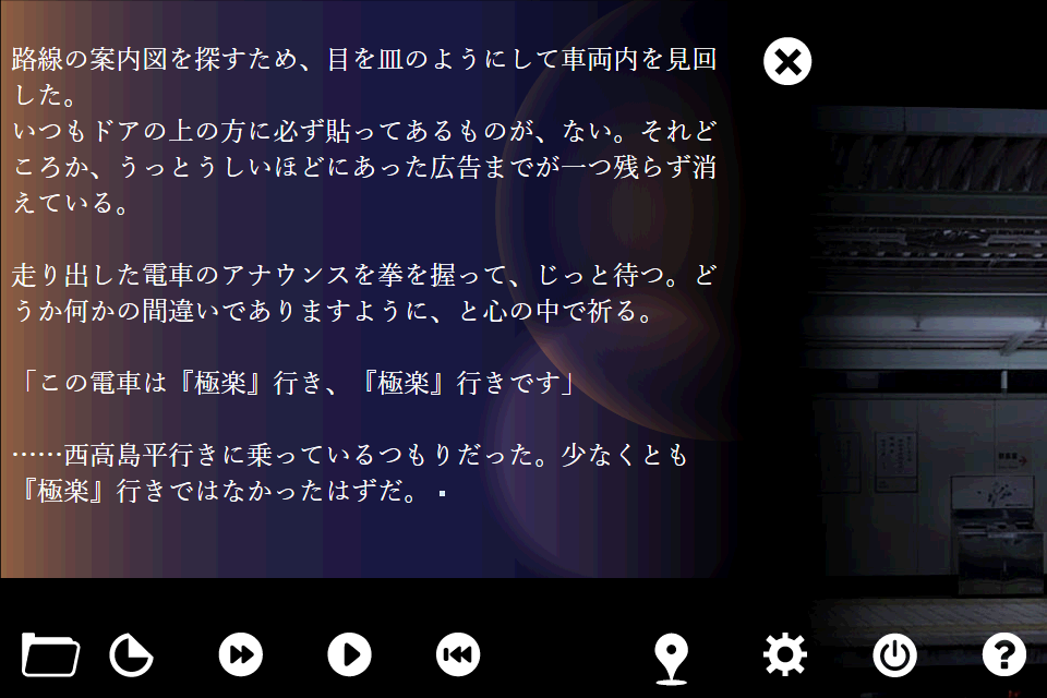 貴方は死者が乗るべき電車へと迷い込んでしまったのだった…。