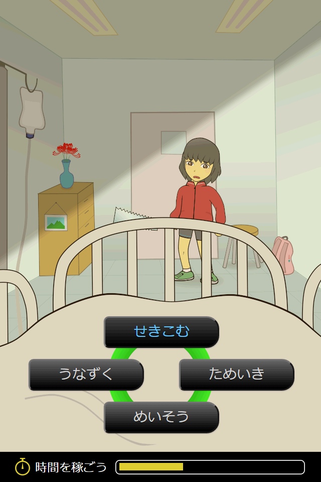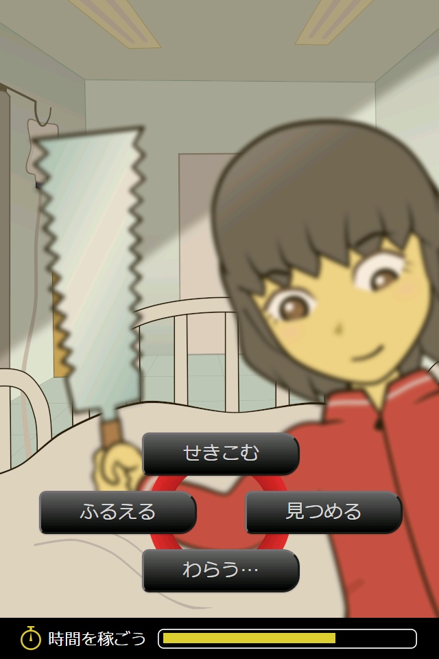 画面下部のメーターがマックスになれば、看護婦さんが現れるので、それまで頑張って時間を稼ぎましょう。