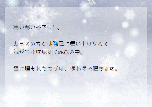 寒い日…強風にあおられて怪我をしたカラスのちび。