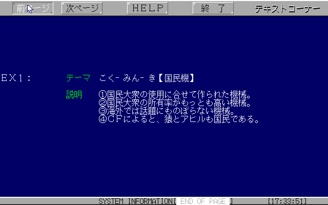 さて、各ゲームについては、各ゲームへのリンクを参照してもらうとしまして、ここではテキストコーナーを取り扱いたいと思います。