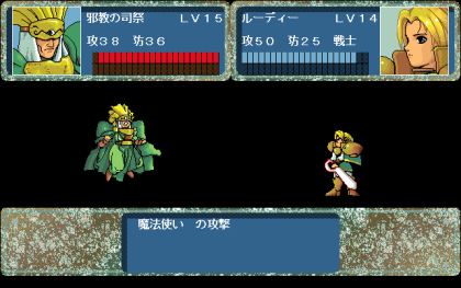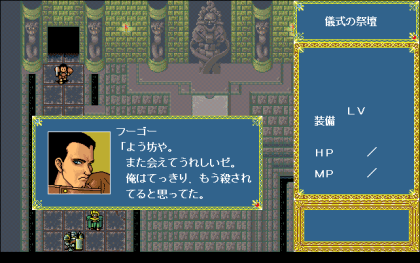 システム的にはオーソドックスなS・RPGですね、女神の剣を割とそのまま引き継いでいる感じですが、前作ではゲームタイトルが表示されていた部分に、今作では現在いる地の名前…というかステージ名が表示されるように変更されています。