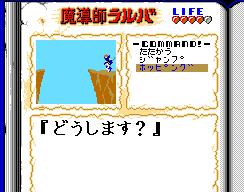 *ここのミニゲームは、ランダムでレットとルーが左右に入れ替わって、どっちがどっちか当てるというもの。計3回クリアしたら突破です。ほぼカンでやるしかないので回数をこなして何とかしてくださいww 実ディスクイメージをお持ちなら、RuMSXの一時セーブ機能を使うのも手ww