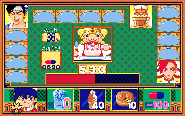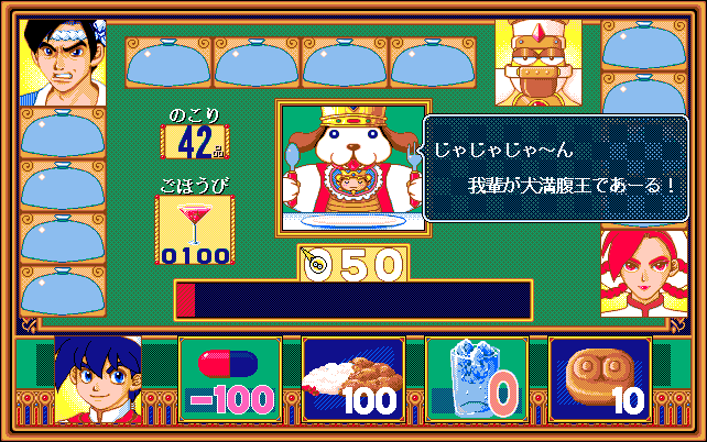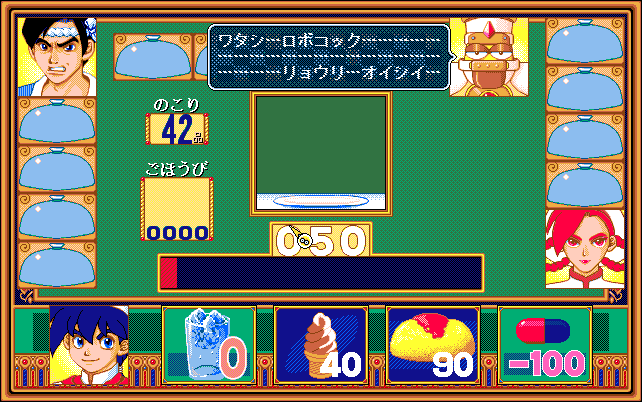 主人公・熱血料理人(名前ないのか…?)は、ほかの3人の挑戦者を蹴落とし、優勝を目指していくことになる…。