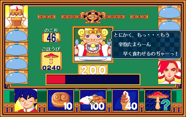 王様に様々な料理を食べさせ、料理対決をするという、ゲームですが… …大体、決戦間際は王様をヤク漬けにするというとんでもない状況になることに…w