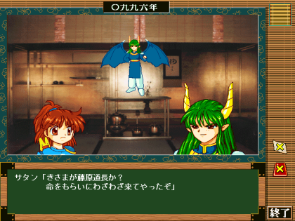 ゲームは、アルルとサタンが言い争いをしているシーンからスタートします。