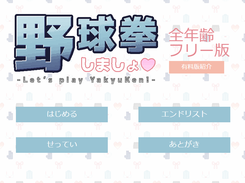 aiGameさんが15禁有料ソフトとして販売している野球拳しましょの全年齢フリー版。