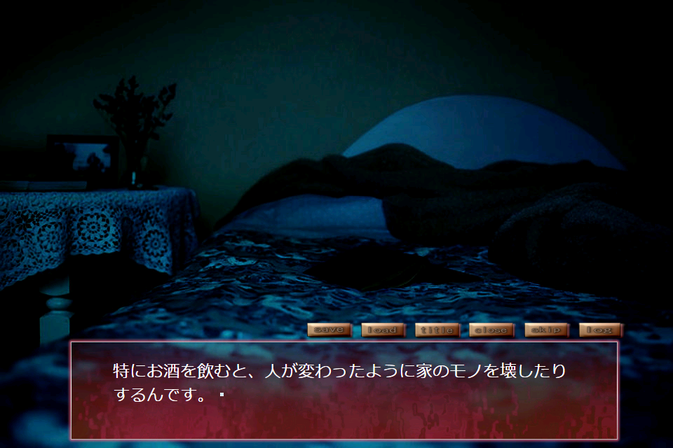 ほぼ背景だけでCGはありませんが、さいごの1シーンだけ絵を入れているのも効果的だと思いました。