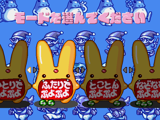 このWindows版に入っているモードは、「ひとりでぷよぷよ」「ふたりでぷよぷよ」「とことんぷよぷよ」「なぞなぞぷよぷよ」など。
