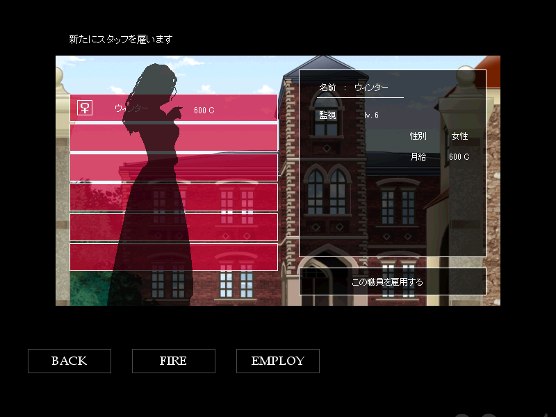 スタッフは女性スタッフと男性スタッフがいますが、男性スタッフは性欲のステータスを持っており、これが高いと少女をレイプすることがあります。