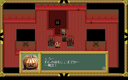 ギルガンの周囲を固める兵士も強いです。カボチャは大体一撃で沈むくらいのHPのものが多いんですが、ギルガンの周囲にいるヤツはHPも高く、反撃を食らうので、倒しづらい…