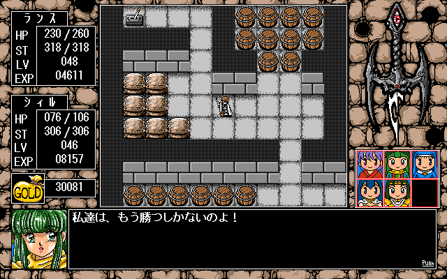 周囲に気遣われた志津香は、吐き捨てるように、なにか感情を投げ捨てるかのように、勝つしかないのだからと言い、とにかく先に進もうとランス達を促します。
