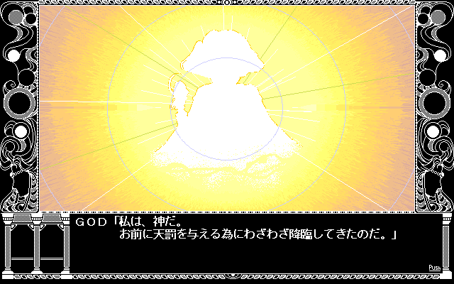 リターンデーモンの洞窟で、神様の書かれた絵を踏み踏みしたことに激怒していた神様は、ここでランスに天罰を与えるといいます。