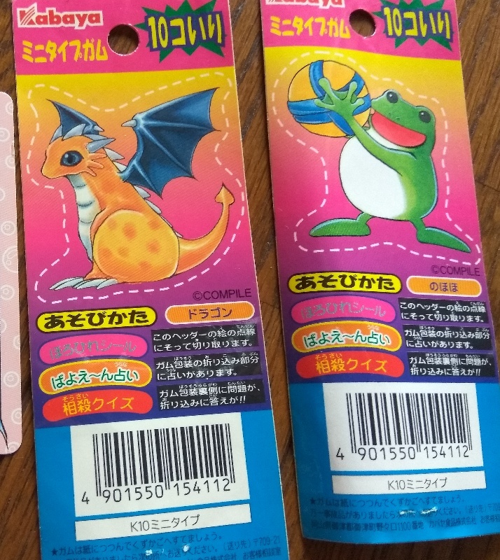 さすがにガム部分のフィルムは残っていませんが、占いやクイズなどがついていたみたいですね。