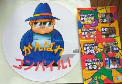 ぷよまん本舗出張店で、田中勝己さんのCDを買うと、特典としてついてきたステッカーとプリクラ風シールです。