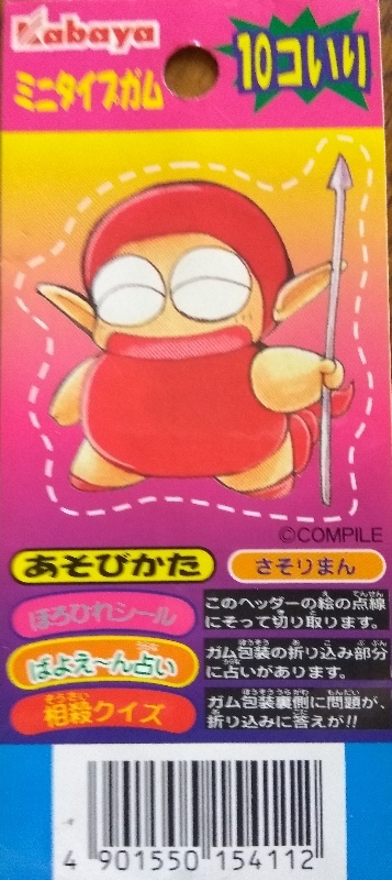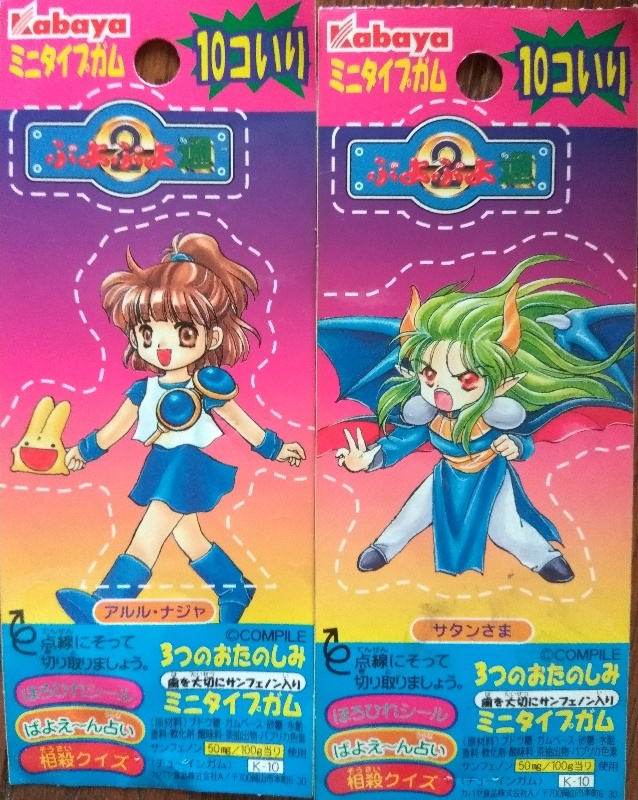 ぷよぷよ通の10連ガムがスーパーなどで販売されており、キャラのプリントされたパッケージのガムと、このようなシールがついていたのでした。