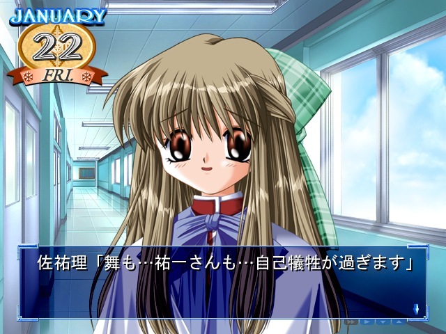 あくまでも自己投影する相手ではなく「祐一」という一人のキャラクターが織りなす恋愛ものとして、ゲームをプレイしていくのがいいかなと言う感じ。