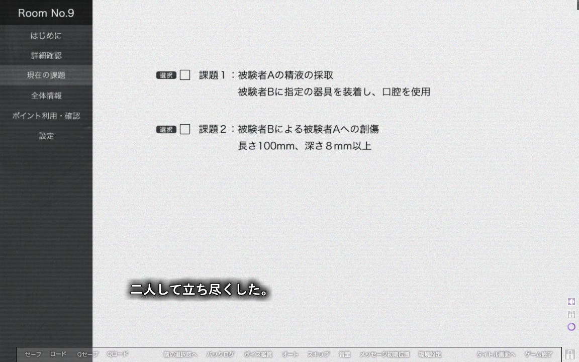 しかし「セックスしないと出られない部屋」は定番だけど、セックス以上のアレコレが必須な部屋ってかなり怖いな。セッ部屋を暴力描写が得意なメーカーさんが作るとこうなるかあ、って感じでした。