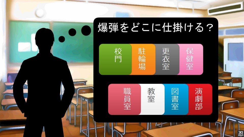 現代の忍者・権三郎となり、学校のあらゆるところに爆弾を仕掛けよう!