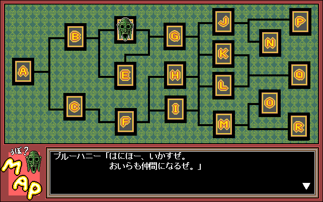 おかゆフィーバーの逆襲マップはこんな感じで分岐しており、それぞれのルートにそれぞれランスシリーズに出てきた女の子(マリアとかランさんとか)が配置されています。