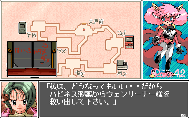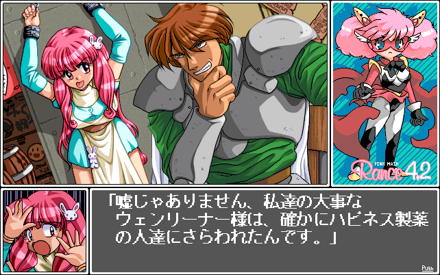 ハピネス製薬にウェンリーナが捕らわれており、それを助け出して欲しいとランスに懇願します。