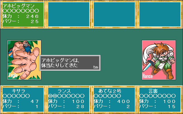 それをモンスターだと思ったランスは、相手に「アホビッグマン」という名前を付けます。