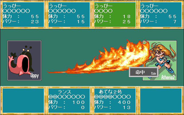 AVGシステムを取り入れていて、コマンドを選ぶごとにランスの満足度が上がっていき、満足度が100を超えるとふぃにっしゅを選べるというHシーンになっていました。