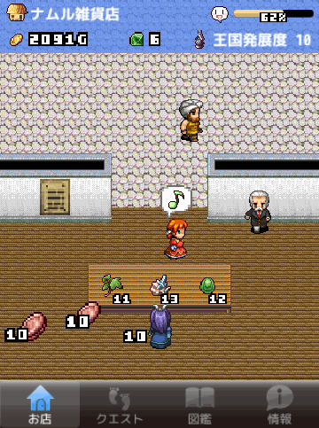 お店にアイテムを並べたら、アプリを落としている間にもアイテムが売れ、起動時に売り上げを受け取れます。