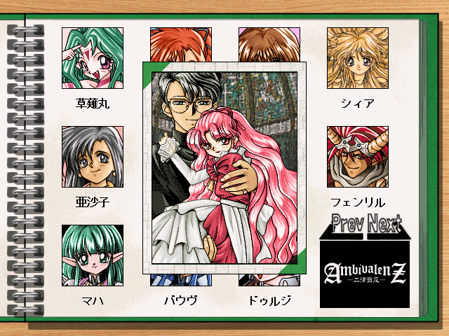 こんな感じで女の子の顔グラフィックが並んでいるので、クリックすると、立ち絵やプロフィールが閲覧できるという仕様。