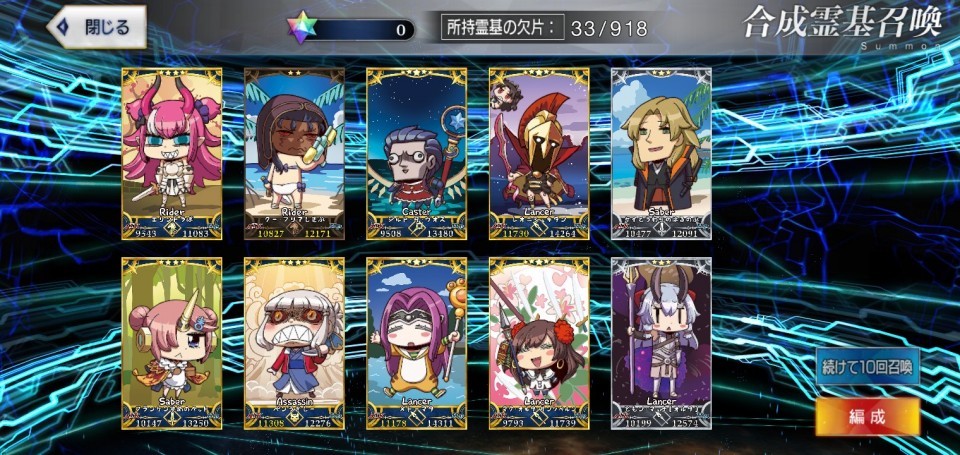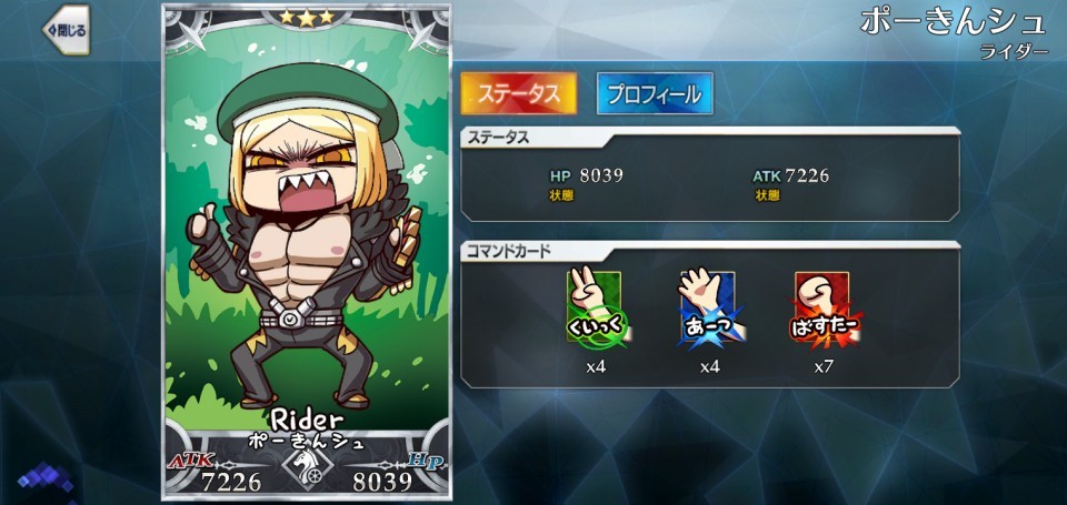 こんな感じで、ガチャで出た偶然できたサーヴァントを楽しんだり、自分で組みかえたりするゲームです。