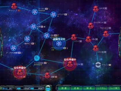 ラバウルから侵攻されるのが、どっちの星域なのかわからなくてマジきつい…早めに落としたほうがいいんだろうけど、防衛で手一杯。