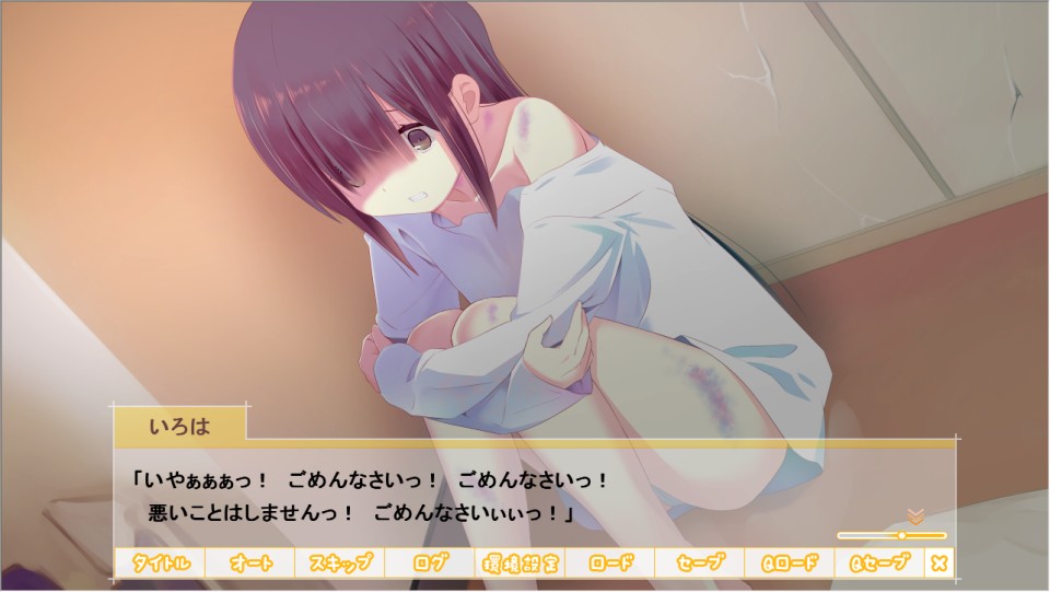 さらなる不満点。えっちしーんでは傷やあざが見えているいろはですが、立ち絵のいろはには傷がありません… ええーなんで!?