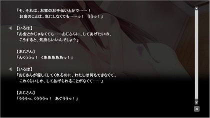 徐々に心を開いていくいろは。そしていろはは、やさしくしてくれるおじさんに何かお礼をしたいと、自分の母親の真似をして、おじさんに気持ち良くなってもらおうとします。