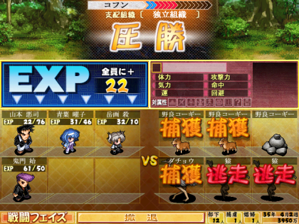 こちらの見込みが甘くて、戦闘フェイズで敵を逃しまくってしまう。…まあいいか。