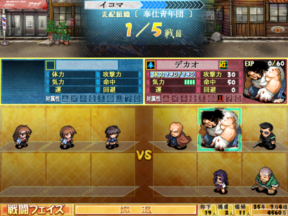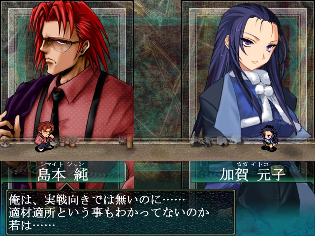 イベントで島本を仲間に。以後、情報フェイズが機能します。島本は戦闘でもターン稼ぎなどに使えるので便利。戦闘に出すと文句言うけど、結構頼りになるんですよね。