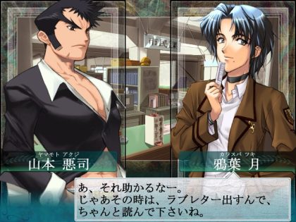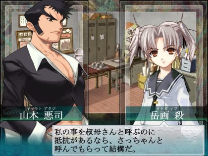 イベントでは乃木屋敷に向かいます。おっさん、おっさん、おじじ、と、この時点では登場キャラに花がないな… 見張りをしているおっさん二人は、きっこちゃんと結婚すると仲間になるのだったっけか。