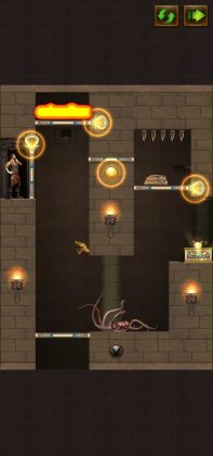 そしてパズルの内容ですが、これはまあまあ面白くはある…けれど、動画広告のように滑らかな動きではなく、キャラクターもトラップも、なんかカクカクした動きのアニメーションしかしません。現代のゲームなのかこれ?ってなった。ある意味面白いけど。